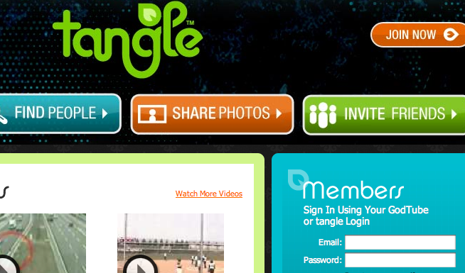 YouTube imitation site GodTube has rebranded itself as tangle and now is trying to imitate MySpace. I think I need to explore this more. After all, Mark Driscoll from Mars Hill Church in Seattle seems to be using it, but I’m not sure what I think about it. Not only do I generally dislike Christian imitations of secular culture, but I also really dislike MySpace… However, I do like sites that provide the option to screen the content to weed out offensive stuff.
